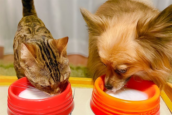・犬や猫の母乳に近い成分なので乳糖の分解が苦手な犬猫も下痢等をおこしにくく安心して与えられます。