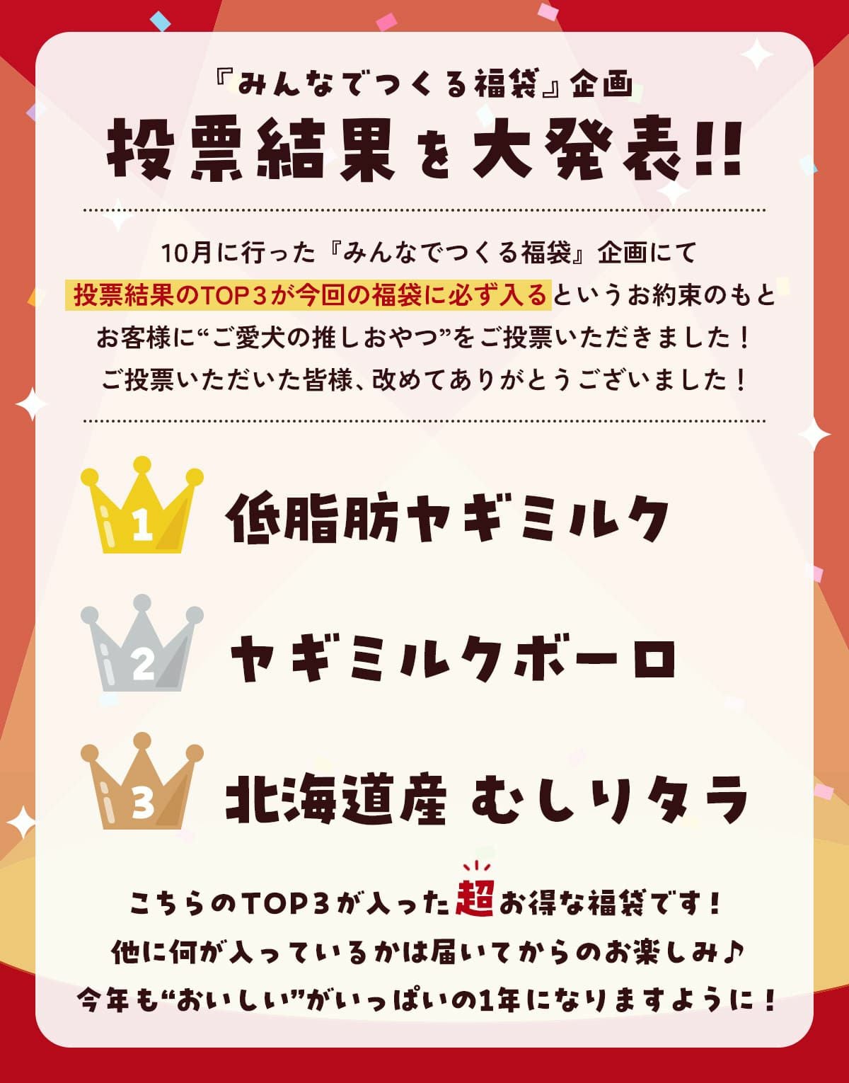 他の画像を見る 送料無料 23%OFF 無添加 ★通常価格より約23%OFF!! 【無添加】安心の無添加おやつがギュギュッとつまった福袋2026 販売価格 ¥ 4,980 税込 4.33 (6) 在庫切れ 詳細を見る お気に入りに登録する